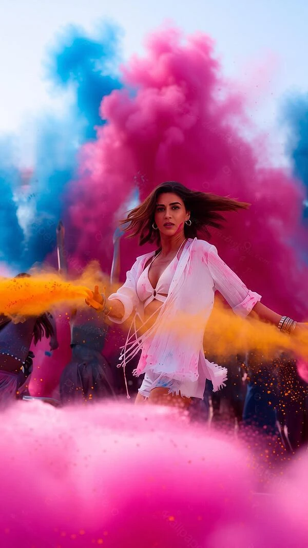 In the electrifying Holi anthem Thaaein Thaaein from Do Patti, Kriti Sanon pulls off the ultimate double act: Saumya, the soft, playful wife drenched in pastel pinks, and Shailee, the wild, seductive twin in bold magenta and silver, both flirting and dancing with Shaheer Sheikh under a storm of colours. One moment she's all coy smiles and gentle teasing, the next she's pure fire—swaying hips, dripping gulal, and eyes that switch from innocent sparkle to dangerous mischief in a heartbeat. It's peak festive glamour, twin-role magic, and Kriti at her hottest, happiest, and most addictive. The song that made 2025 Holi playlists explode and phones across India glow pink.