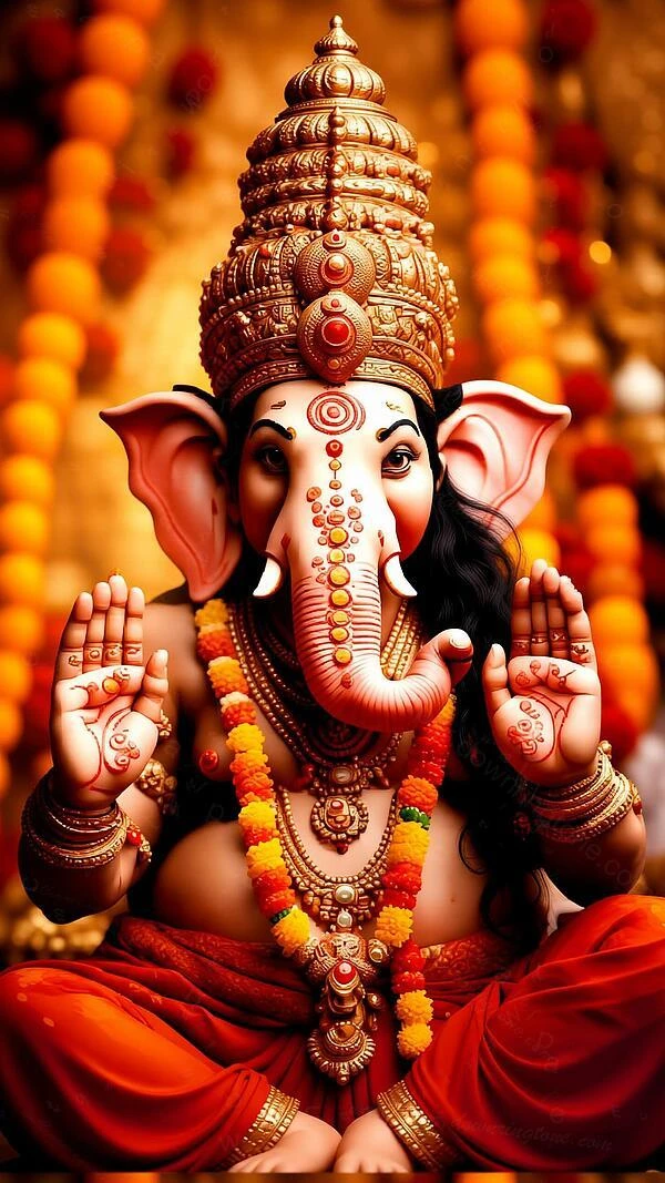 Lord Ganesha, the elephant-headed god of wisdom and success, is the beloved remover of obstacles (Vighnaharta) and the first deity worshipped in every Hindu ritual. Son of Shiva and Parvati, he has a curvaceous body, one broken tusk, four arms holding modak (his favorite sweet), ankusha (goad), pasha (noose), and blessing gesture, with a tiny mouse as his vehicle. Known as Ganpati, Ekdanta, and Lambodara, he is the patron of arts, knowledge, and new beginnings. Instantly recognizable by his cheerful smile and peacock-feather crown, Ganesha is adored across India with the chant "Ganpati Bappa Morya!" during the grand 10-day Ganesh Chaturthi festival.