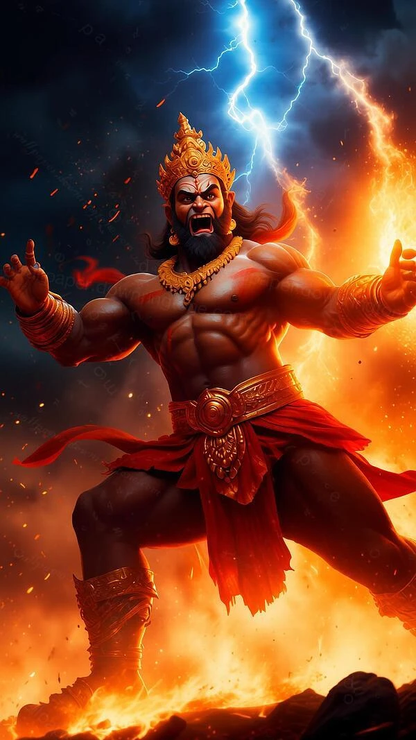 Hanuman is the mighty monkey-god and greatest devotee of Lord Rama in Hinduism. Son of the wind god Vayu, he possesses unmatched strength, speed, and the power to change size at will. Famous for leaping across the ocean to Lanka, carrying an entire mountain to save Lakshmana, and burning Lanka with his tail, Hanuman symbolizes selfless devotion (bhakti), courage, and loyalty. Instantly recognizable by his vanara face, gada (mace), and the image of Rama-Sita in his heart, he is worshipped as the living protector who removes all obstacles and fears. Millions chant the Hanuman Chalisa daily, believing that sincere call of "Jai Bajrang Bali" brings Hanuman's immediate presence and blessings.