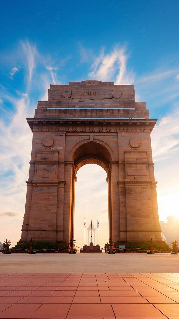 India Gate is the iconic 42-meter-high war memorial and triumphal arch located at the heart of New Delhi. Designed by Sir Edwin Lutyens and completed in 1931, it commemorates over 70,000 soldiers of the British Indian Army who died in World War I and the Third Anglo-Afghan War. The names of 13,516 fallen soldiers are inscribed on its walls. Beneath the arch burns the eternal flame of the Amar Jawan Jyoti (Flame of the Immortal Soldier), added in 1971 to honor martyrs of the 1971 Indo-Pak War. Surrounded by lush lawns, it serves as a major landmark, picnic spot, and the focal point of Republic Day celebrations. At night, the illuminated India Gate against the dark sky is one of India's most photographed and cherished national symbols.