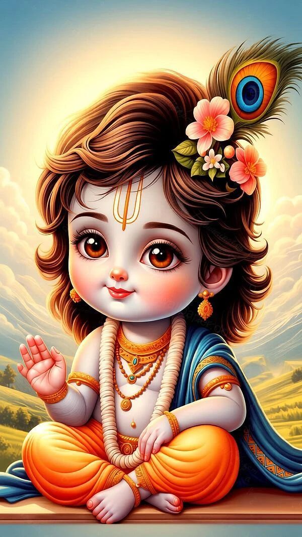 Lord Krishna, the charming and divine incarnation of Vishnu, is one of the most beloved deities in Hinduism. Known as the dark-skinned flute player (Muralidhar), butter thief (Makhan Chor), and eternal lover of Radha, he embodies love, wisdom, and divine play (lila). Born in Mathura and raised in Vrindavan, Krishna is celebrated for his childhood mischief, the enchanting Ras Leela dance with the gopis, and his profound teachings in the Bhagavad Gita as Arjuna's charioteer. Adorned with a peacock feather crown, yellow dhoti, and garlands, he is worshipped as the supreme protector and compassionate guide. Millions chant "Hare Krishna" and celebrate his birth during Janmashtami with devotion and joy.