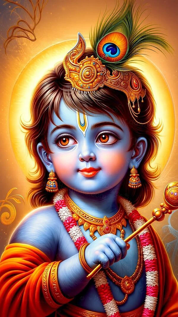 Lord Krishna, the charming and divine incarnation of Vishnu, is one of the most beloved deities in Hinduism. Known as the dark-skinned flute player (Muralidhar), butter thief (Makhan Chor), and eternal lover of Radha, he embodies love, wisdom, and divine play (lila). Born in Mathura and raised in Vrindavan, Krishna is celebrated for his childhood mischief, the enchanting Ras Leela dance with the gopis, and his profound teachings in the Bhagavad Gita as Arjuna's charioteer. Adorned with a peacock feather crown, yellow dhoti, and garlands, he is worshipped as the supreme protector and compassionate guide. Millions chant "Hare Krishna" and celebrate his birth during Janmashtami with devotion and joy.