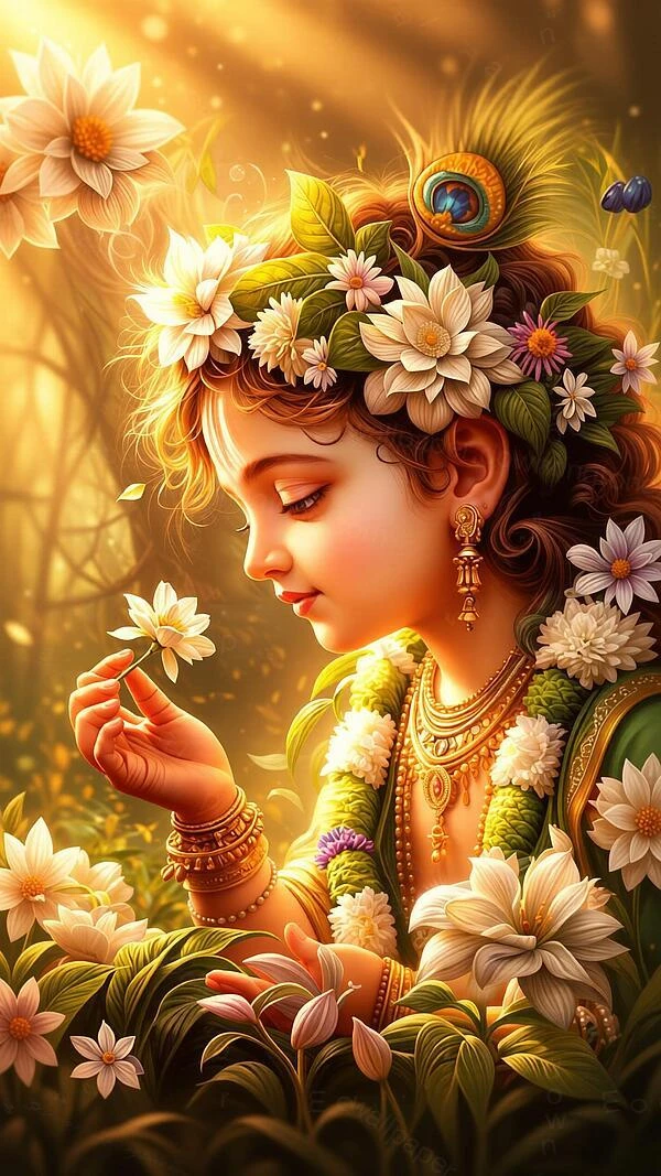 Lord Krishna, the charming and divine incarnation of Vishnu, is one of the most beloved deities in Hinduism. Known as the dark-skinned flute player (Muralidhar), butter thief (Makhan Chor), and eternal lover of Radha, he embodies love, wisdom, and divine play (lila). Born in Mathura and raised in Vrindavan, Krishna is celebrated for his childhood mischief, the enchanting Ras Leela dance with the gopis, and his profound teachings in the Bhagavad Gita as Arjuna's charioteer. Adorned with a peacock feather crown, yellow dhoti, and garlands, he is worshipped as the supreme protector and compassionate guide. Millions chant "Hare Krishna" and celebrate his birth during Janmashtami with devotion and joy.