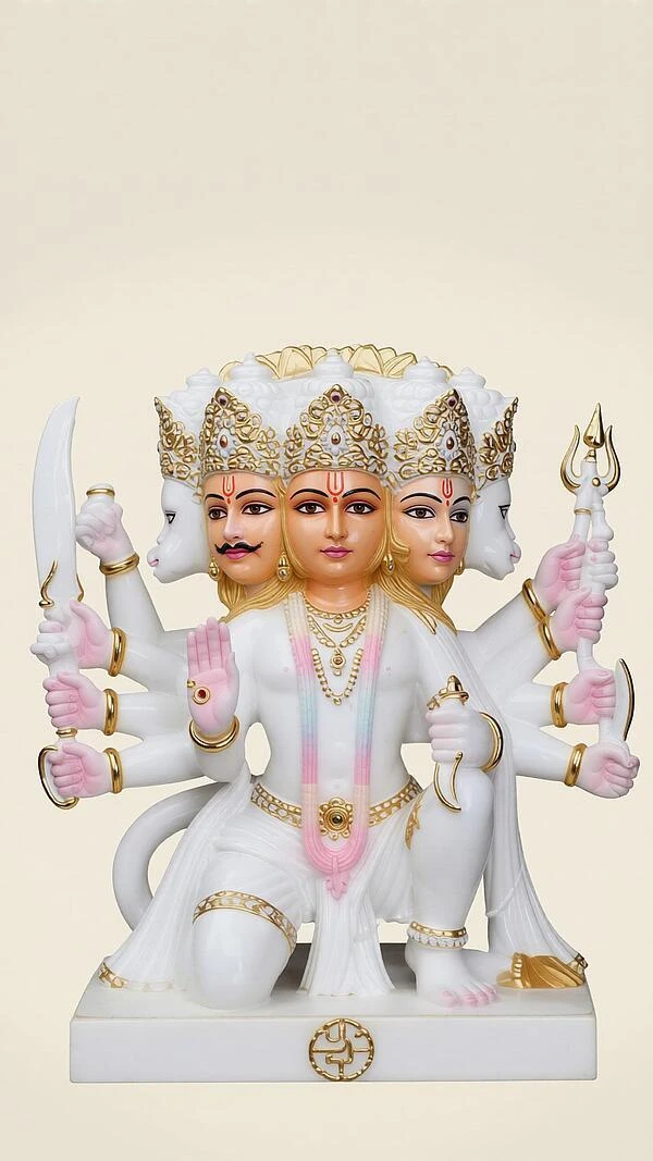 Panchmukhi Hanuman, also known as Five-Faced Hanuman, is one of the most powerful and revered forms of Lord Hanuman in Hindu tradition. This divine manifestation appeared during the epic battle with the demon king Ahiravana in the netherworld, where Hanuman assumed five faces - Hanuman (center), Narasimha (south), Varaha (north), Garuda (west), and Hayagriva (upwards) - along with ten arms wielding different weapons to simultaneously extinguish five magical lamps and rescue Lord Rama and Lakshmana. Symbolizing complete protection from all directions, removal of negative energies, victory over evil, and bestowal of strength, wisdom, and health, the Panchmukhi Hanuman form is widely worshipped across India as the ultimate guardian deity. Devotees keep this sacred image as wallpapers and in pooja rooms believing it shields them from all harm and grants unparalleled divine grace.
