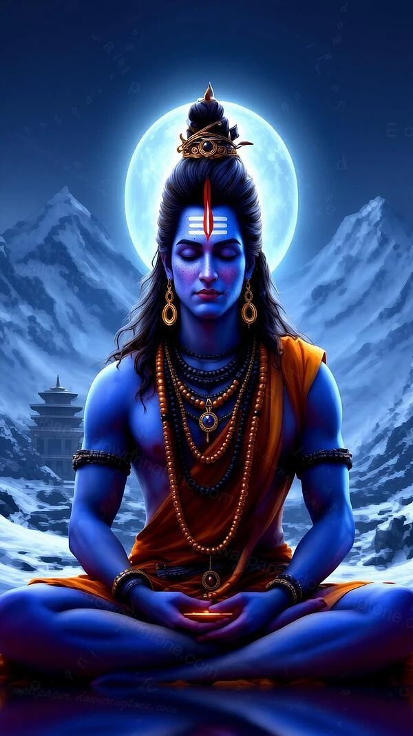 Shiva (Sanskrit: Śiva, "The Auspicious One") is one of the principal deities of Hinduism and the Supreme Being in Shaivism. Known as the destroyer and transformer within the Trimurti (alongside Brahma the creator and Vishnu the preserver), Shiva is also the lord of yoga, meditation, dance, and cosmic creation/destruction cycles. Common icons: Lingam (abstract aniconic form) Nataraja (cosmic dancer) Meditating ascetic with matted hair, Ganges river, crescent moon, third eye, trident, and serpent Ardhanarishvara (half-male, half-female form) He is both fearsome (as Bhairava or Mahakala) and benevolent, the ideal husband to Parvati, and father of Ganesha and Kartikeya. Shiva represents ultimate reality, purity, and liberation (moksha).